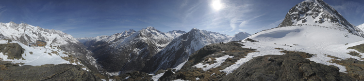 Saas-Fee Plattjen 2570m.ü.M. Rundpanorama Objektiv Brennweite 24mm